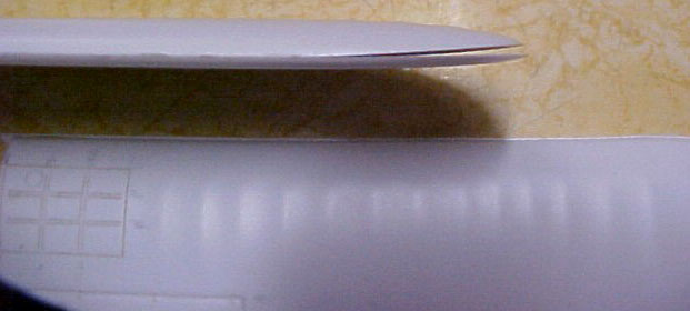 The wing halves glued together, using the wing fold panel/aileron divide line and a happy compromise between leading and trailing edges as the guides: |