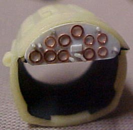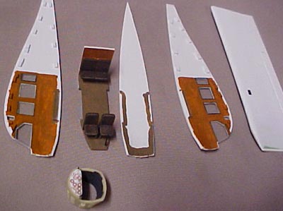 | Got a little carried away here and made bezels from bronze guitar string wrap; an interesting experiment and not as hard as it looks, but darned near invisible after assembly (but those windows ARE awfully clear...): | Pactra flat Panzer Grey, Testors gloss black, Plasti-Kote aluminum (good paint, available in large jars in some hardware stores) and a silver art pencil finish this job. |